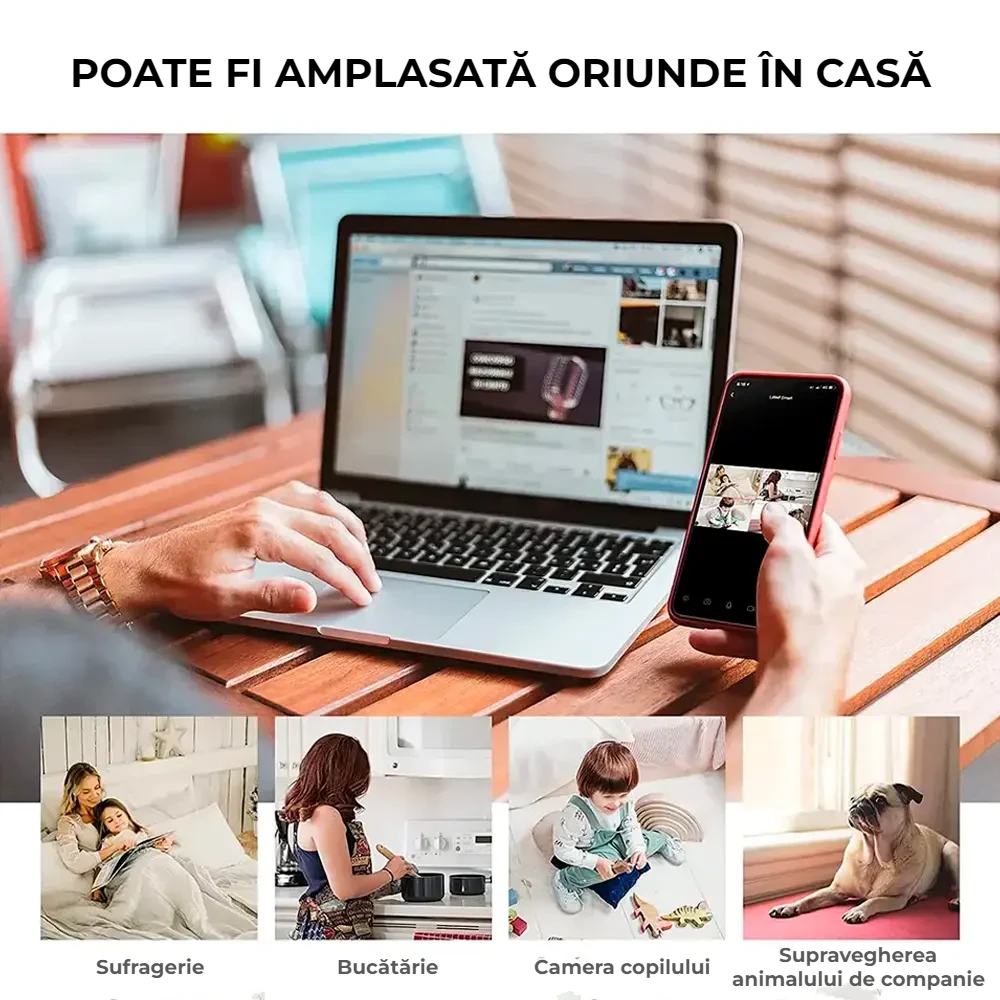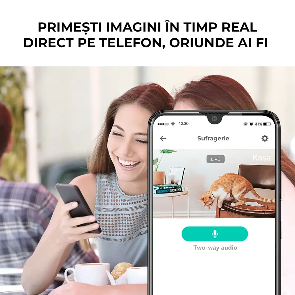Camera de supraveghere îți vine în ajutor cu funcția sa de convorbire bidirecțională, permițându-ți să fii mereu aproape de familie, chiar și atunci când ești plecat. In acelasi timp, captează si mentine in focus fiecare mișcare datorită urmăririi automate. Aceasta înseamnă că vei putea vorbi cu cei dragi sau vei fi alertat instant atunci când camera detectează mișcare, fără a pierde niciun moment important.