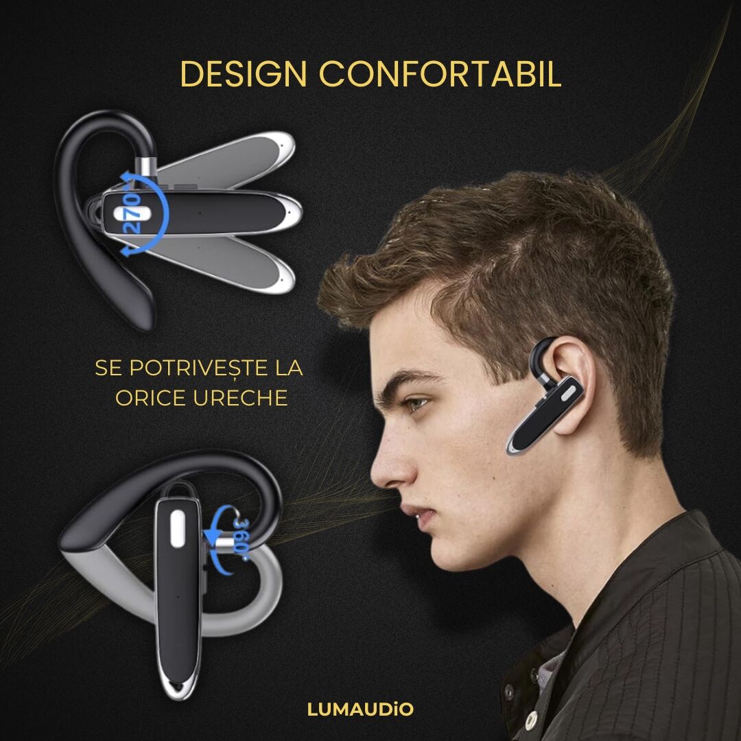 Casca Lumaudio Ring impresionează cu un design ergonomic. Este o casca bluetooth mica, asa ca se potriveste perfect pe orice ureche și oferă o fixare sigură pentru a rămâne stabila în timpul activităților zilnice. Fabricată din materiale de înaltă calitate, casca bluetooth este ușoară și placută la purtat.