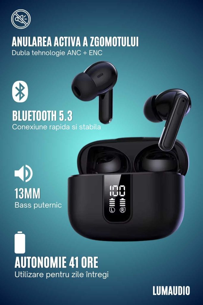 Căști Audio Wireless LUMAUDiO® Impulse Autonomie 41 Ore și Dubla tehnologie de Anulare a Zgomotelor ANC+ENC - specificatii si caracteristici