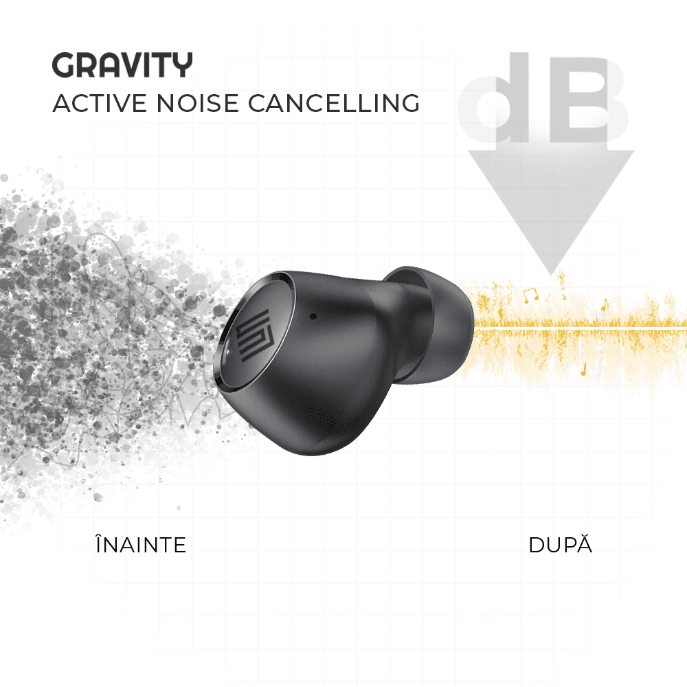 Castile wireless Lumaudio GRAVITY iti permit sa personalizezi felul in care asculti. Poti activa anularea zgomotului atunci cand simti ca nu vrei sa pierzi nici o nota din muzica ta preferata. Sau poti porni microfoanele pentru modul de transparenta, atunci cand simti ca nu vrei sa pierzi nimic din ce se intampla in jurul tau.