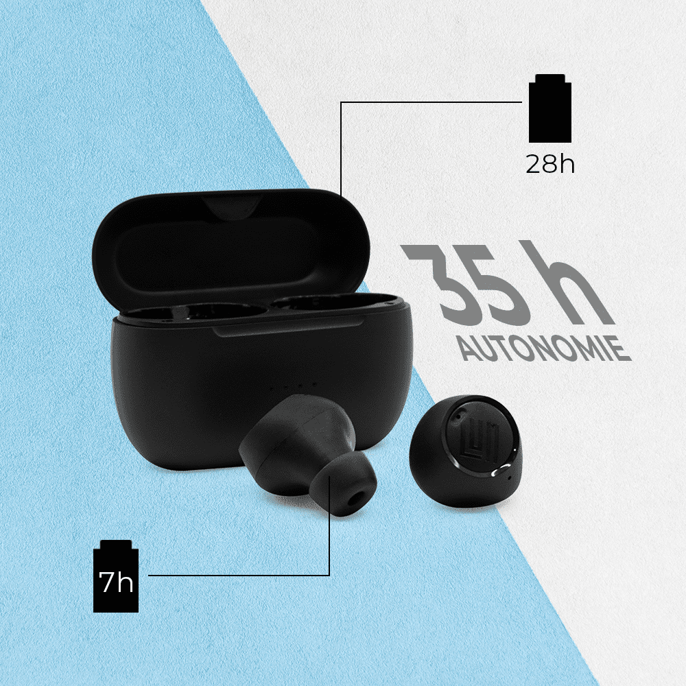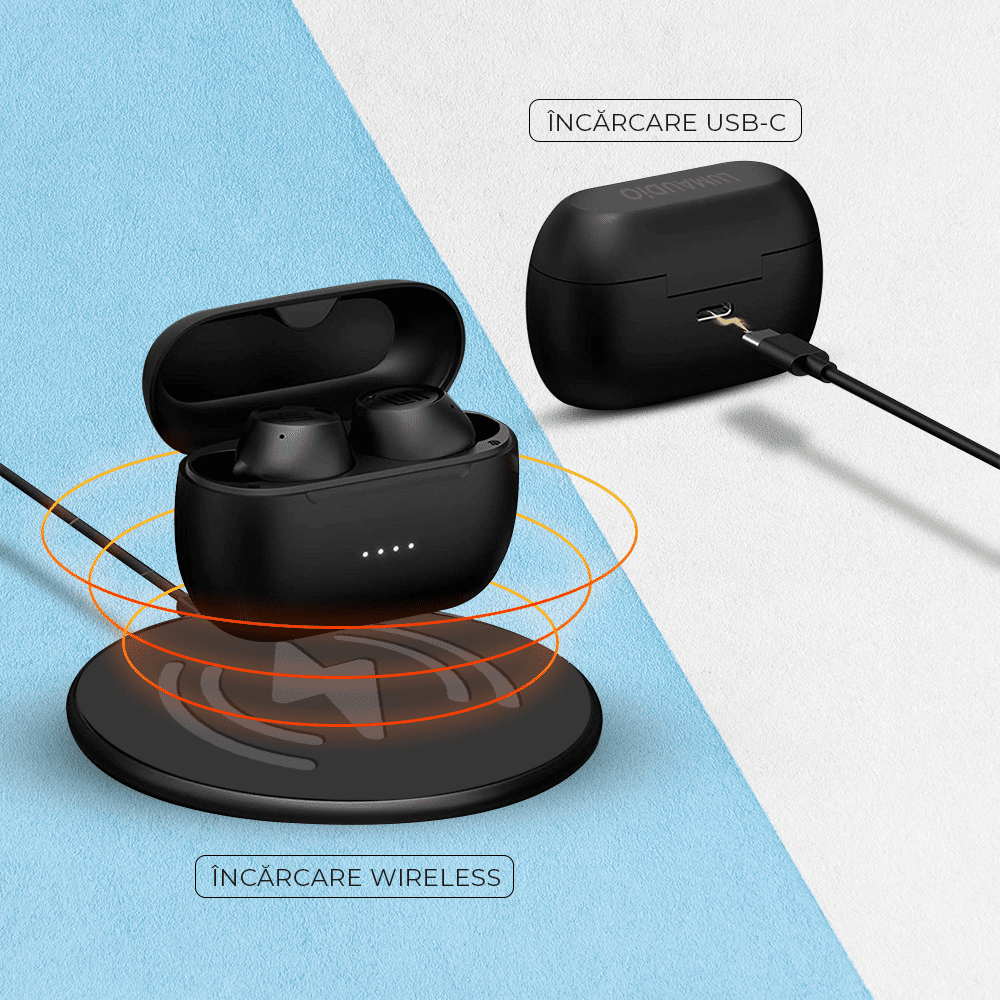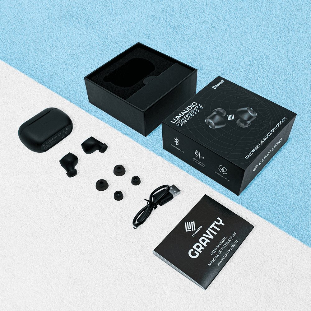 Castile bluetooth Lumaudio GRAVITY au o autonomie de 7h de ascultare fara intreruperi. Impreuna cu reincarcarile pe care le ofera cutia de depozitare, nu este nevoie sa te desparti de muzica ta intreaga zi.