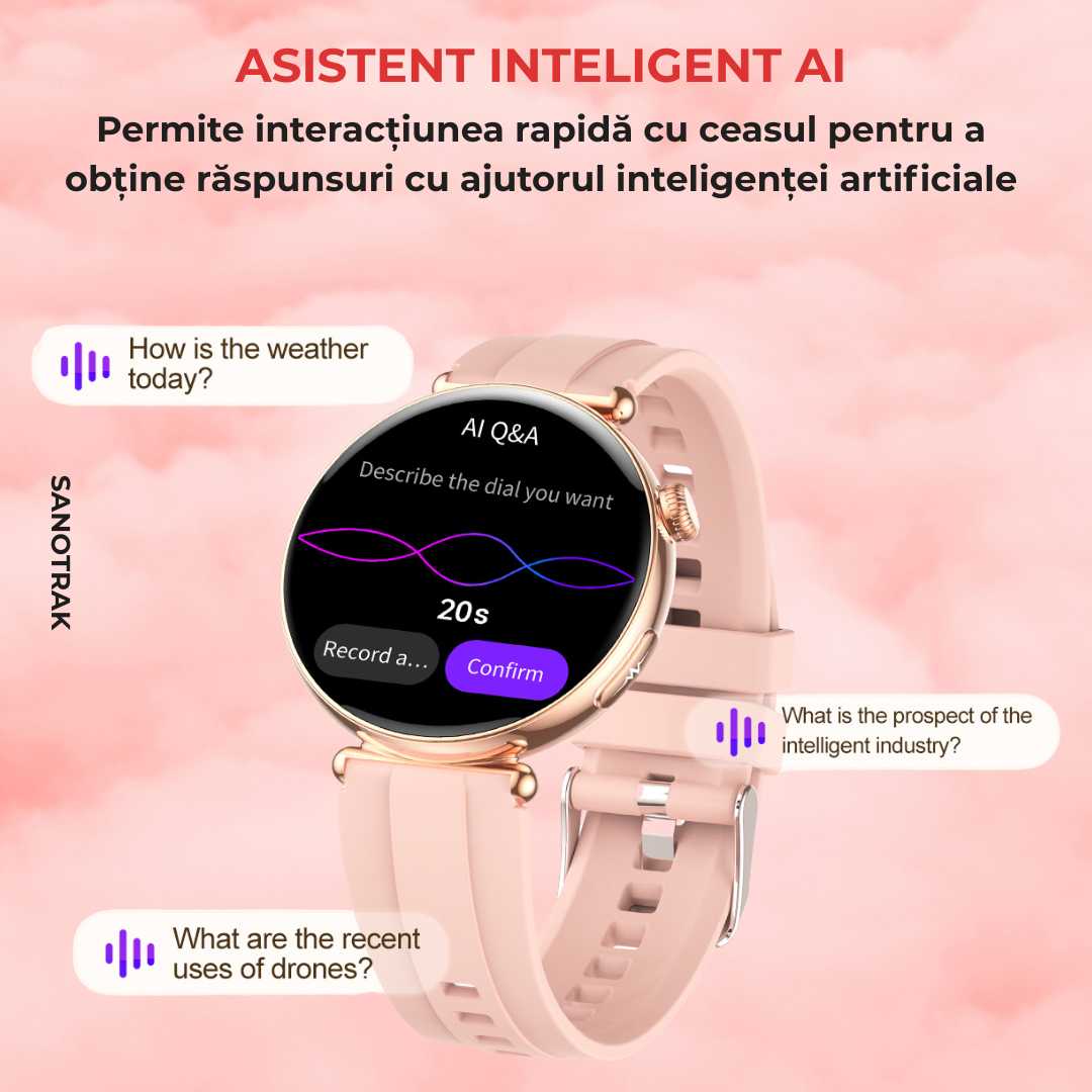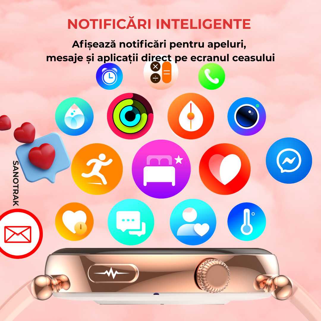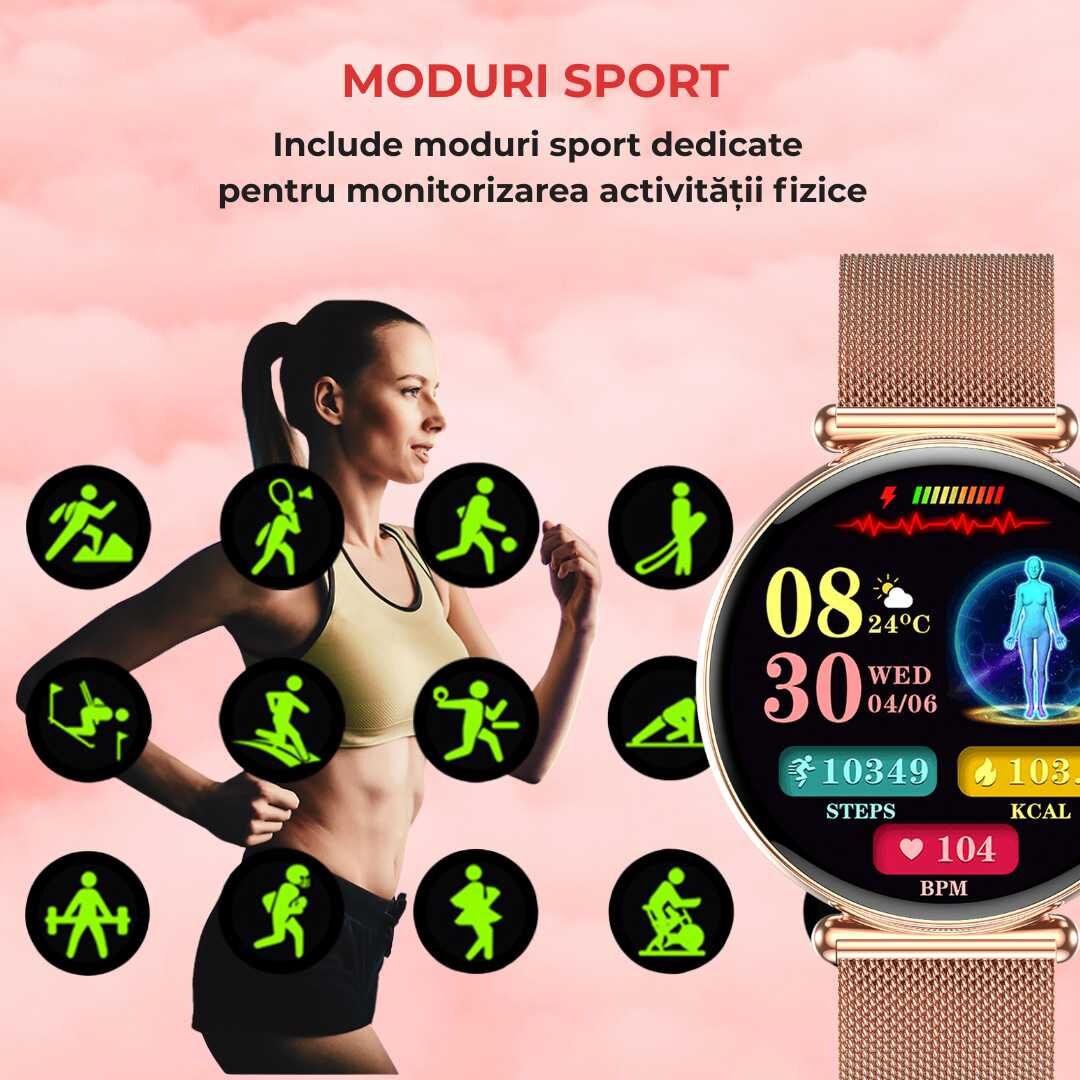 Smartwatch dama cu apeluri Bluetooth și notificări rețele de socializare