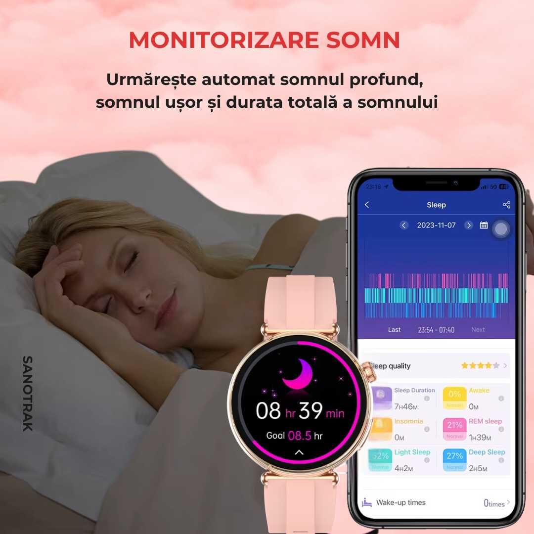 Funcția dedicată de monitorizare a sănătății femeii adaugă un nivel suplimentar de personalizare, oferind urmărirea ciclului menstrual, a ovulației și a simptomelor asociate, cu notificări inteligente și sugestii utile, adaptate ritmurilor hormonale.