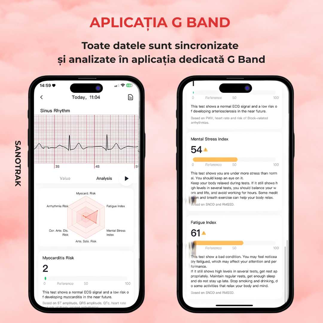 Una dintre funcțiile centrale ale ceasului este EKG (electrocardiograma), care permite înregistrarea activității electrice a inimii direct de la încheietura mâinii, prin contactul electrozilor integrați. În același timp, SANOTRAK Pulsara permite monitorizarea tensiunii arteriale și estimarea nivelului glicemiei fără înțepături, oferind o modalitate rapidă și convenabilă de a urmări parametri importanți ai stării generale de sănătate. Aceste funcții sunt completate de monitorizarea ritmului cardiac, a nivelului de oxigen din sânge (SpO₂), a temperaturii corporale și a variabilității ritmului cardiac (HRV).